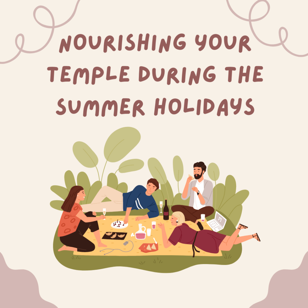 Can you believe that Memorial Day weekend is here? I am looking forward to the long weekend. It seems we were celebrating the start of a new year only yesterday. As the summer months unfold and the season of holidays and vacations approaches, it’s easy to get caught up in the whirlwind of festivities and indulgences. However, amidst the barbecues, beach trips, and ice cream cones, it’s important to remember that our bodies are temples of the Holy Spirit. Honoring and nourishing our bodies with intentionality and mindfulness is a sacred act of worship. In this blog post, we’ll explore how to focus on nourishing your body as a temple of the Holy Spirit during the summer, finding a balance between celebration and self-care.